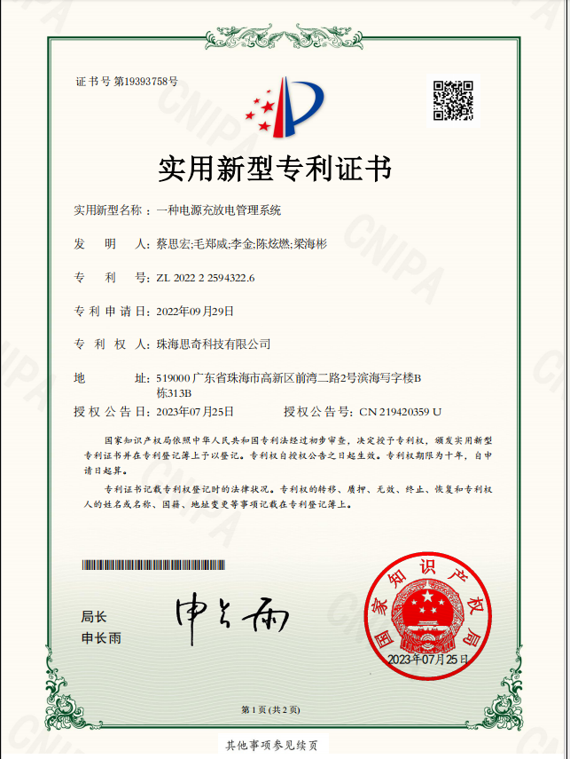 本申請實施例提供了一種電源充放電管理系統(tǒng),其特征在于:包括電源適配器、電池和電源管理電路,電源適配器與外部電源連接,電源管理電路用于在電池電量滿足負(fù)載設(shè)備的用電需求時,選擇電池為其供電,在電池電量不滿足負(fù)載設(shè)備的用電需求時,切換至電源適配器的第一輸出端,由外部電源供電,電源管理電路還與電源適配器的第二輸出端連接,由與電源適配器連接的外部電源與電源管理電路供電,在電池電量不足時,通過電源管理電路為電池充電。本實施例的負(fù)載所需的用電電壓VCC可以通過電源管理電路由電池或適配器供電,并且當(dāng)電池電壓下降到充電閾值(VREF)以下時,可通過適配器為電池充電,電路結(jié)構(gòu)簡單,提高了電源管理的效率。